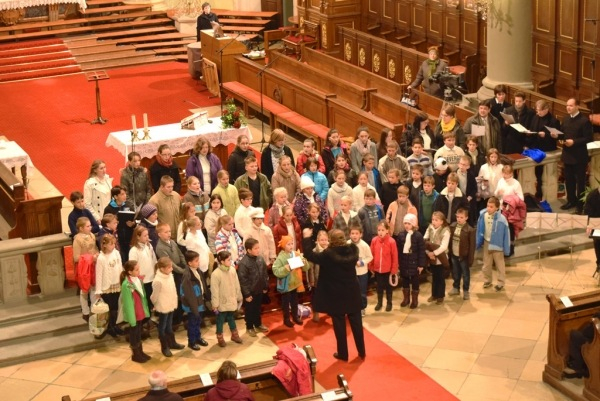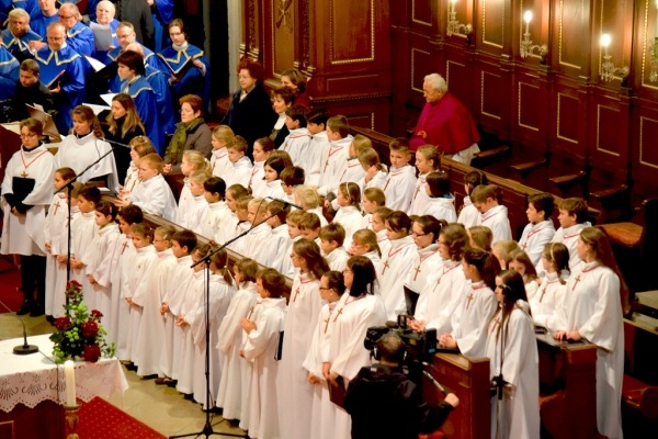 és a 17 éves Szervita Kórus a belgiumi Ciney városka felé
